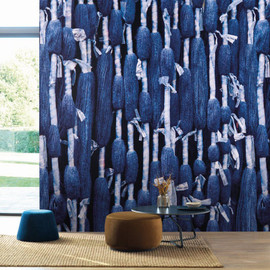 GINK 8627 65 74 Indigo Ginkgo Wall Panel by Casadeco