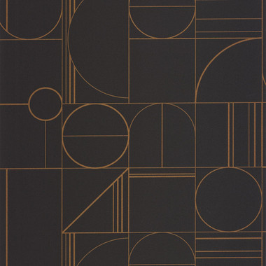 Graphic and chic, Border wallpaper from the 105069426 Outlines collection by Caselio takes the borders from the Limit design creating a minimalist and modern design. The lines are enhanced with a subtle iridescent finish adding a touch of refinement, shown here in Noir Cuivre.