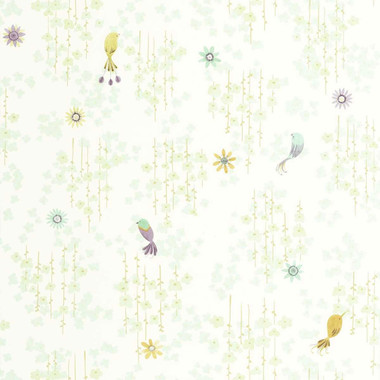 The Casadeco Tropical Birds wallpaper 200787117) from the Once Upon a Time 2 collection features vibrant, exotic bird designs perched beneath a canopy of flowers. Its pastel tones of almond green, lilac, pink, blue, and beige create a soft, soothing atmosphere perfect for children's spaces. The smooth finish and washable properties make it practical for everyday use, and it is easy to apply with a paste-the-wall method. Colour in light pastel green tones.Specification: