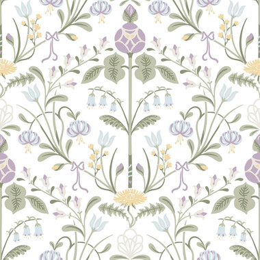 Introduce a Swedish feel to the interior with S10154 Till Carl wallpaper from the Huset i Solen collection by Sandberg, featuring a delicate floral print surrounded by vines and leaves, presented in a damask style. Certain to offer a calming touch within the interior, Till Carl wallpaper is perfect for offices, living rooms and bedrooms. Shown here in Lilac.