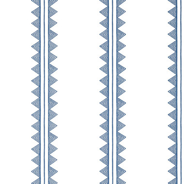 T16226 Agave Stripe wallpaper from the Kismet collection offers vibrant pops of colour paired with ample open space for a clean, cheerful aesthetic. This design presents a simplified interpretation of a block print fabric, bringing a playful yet streamlined energy to any space. Shown here in Navy.