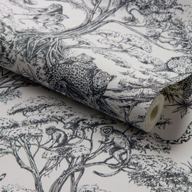 Discover the mesmerizing W0185/04 Kisumu wallpaper from the exclusive Breegan Jane x Clarke and Clarke collection, where the essence of Africa's vibrant landscape and wildlife comes to life in every brushstroke. With its illustrative print quality, Kisumu invites you on a visual safari, celebrating the soul-stirring beauty of the continent. This captivating design showcases an intricate hand-drawn African toile, paying homage to the iconic Baobab tree – revered as the 'Tree of Life'. Shown here in Noir/Luxe.