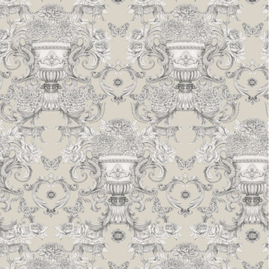 W7490-03 Chateau Wallpaper By Matthew Williamson is a traditional design, taking inspiration from the faded grandeur of stately homes and gardens. The focal point of this captivaing print is a stonework urn, filled with summer blooms and foliage. Perfect for adding a quirky, yet classic print to the interior, Chateau wallpaper is available in an array of modern colour options to suit the home.