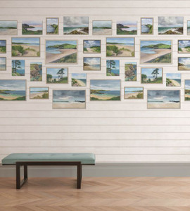 Set against a wood panelled backdrop, W7681-02 Seascape wallpaper by Osborne and Little features a compilation of watercolour paintings hung in the style of a gallery wall. Seascape is the perfect addition to the home for art enthusiasts, featuring a compilation of different designs to captivate the viewer. Shown here in Duck Egg.