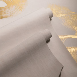 W951/04 Kuju wallpaper from the Tsauri collection by Black Edition features fluid metallic lines that gracefully embody simplicity, inspired by a majestic landscape exuding calm and tranquility. Printed on a background mimicking fine silk, the design uses innovative foam for depth and is overlaid with metallic foil for a touch of luster. Shown here in Halite.