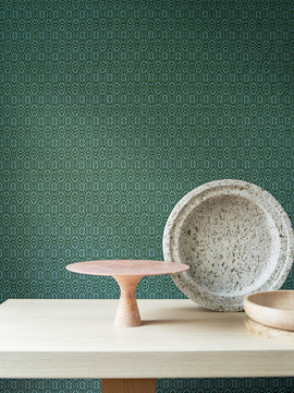 L'Extasee wallpaper from the L'invite collection by Arte depicts closed, geometric shapes printed in a small scale to create an intricate pattern reminiscent of lace. L'Extasee has an air of luxury due to its lace appearance, and is a surprising yet inviting print, certain to add interest to the walls of the modern home. Arte's Extasee wallpaper is a paste the wall collection meaning ease during hanging, and the wallpapers are printed on a non-woven substrate for superior quality.