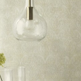 An artistic interpretation of curling leaves, 83560111 Mestre wallpaper from the Palazzo collection by Casadeco features luxurious botanical arabesques, a chic and stylish design, shown here in Blanc.