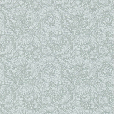 216824 Bachelors Button Compilation Wallpaper by Morris & Co features a dramatic design of swirling leaves painted in the style of medieval frescos, shown here in Silver.