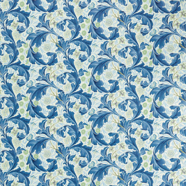 Introducing the exquisite 227210 Leicester Fabric from the esteemed Bedford Park collection by Morris & Co, where the rich heritage of William Morris continues to inspire. Crafted by Morris's apprentice, J.H. Dearle, in 1912, this adapted design showcases Dearle's mastery of large-scale, rhythmically swirling patterns. Retaining all of its ecstatic movement, Leicester boasts folding acanthus leaves and miniature, jewel-like flowerheads that readily soak up great depths of colour. Shown here in Paradise Blue.