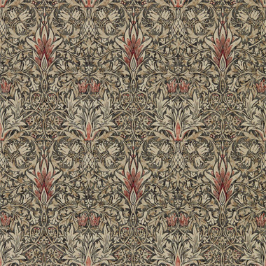 Originally produced in 1876, 216870 Snakeshead wallpaper from the Compilation collection by Morris & Co is reportedly one of William Morriss favourite designs and features clusters of snakeshead fritillaries, presented in a range of earthy colour options, shown here in Charcoal and Spice.