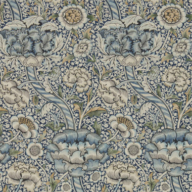 First produced in 1884, 216805 Wandle wallpaper from the Compilation collection by Morris & Co features an opulent design with a striped meandering diagonal branch from which flowers emanate. Presented in a stunning array of colour options perfect for creating a statement in any room of the home and shown here in Blue and Stone.