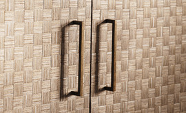 The ZW145/01 Pyrite wallpaper from Zinc's Mineralogy collection features a three-dimensional basket weave design, blending matte paper string with metallic foil for a striking effect. Shown here in Spacedust.